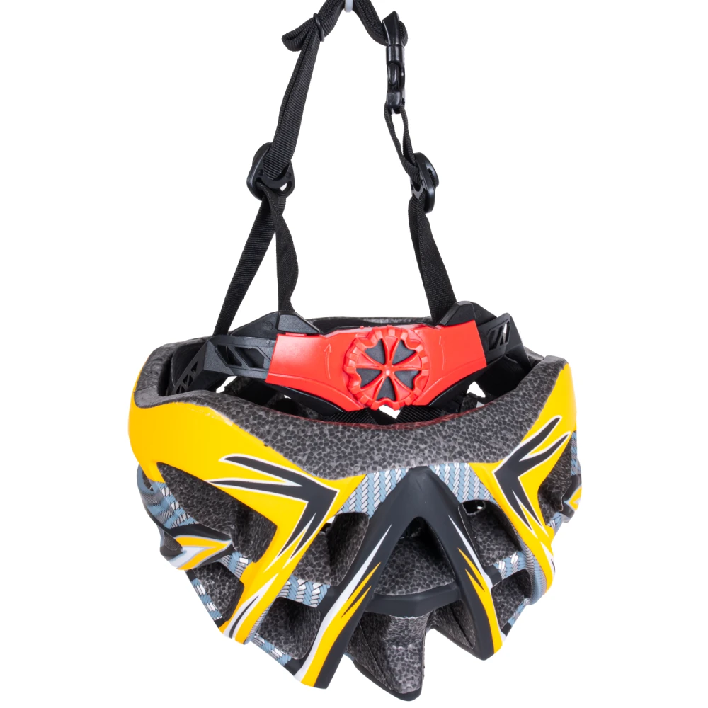 Изготовлен из поликарбоната, данный материал отличается прочностью и легкостью. Аксессуар удобно сидит на голове, его с легкостью можно отрегулировать под необходимый вам размер. Имеется 8 отверстий, которые обеспечивают хороший проход воздуха и голова не будет так сильно потеть.