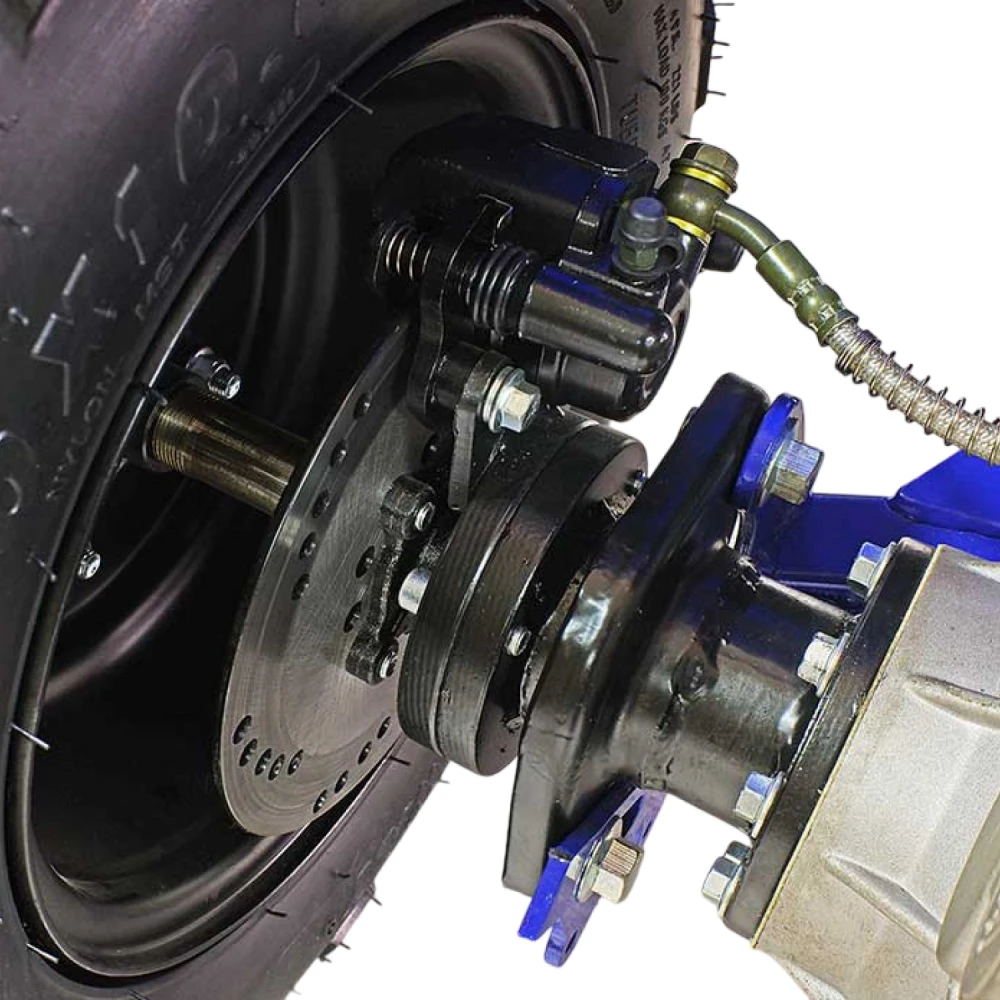 У GreenCamel Caxapa A1520 бесщеточный мотор типа BLDC, на выбор два вида батарей, штатная и более мощная. Разница заключается в запасе хода, ресурса и время зарядки батареи. Пружинные амортизаторы, тип передачи: дифференциал. Тормоза задние: ножной дисковый, передние тормоза барабанные. Пробег на одном заряде от 40 до 80 км. Зависит от выбранной зарядной батареи. У квадроцикла отсутствует спидометр. Максимальная нагрузка 125 кг.