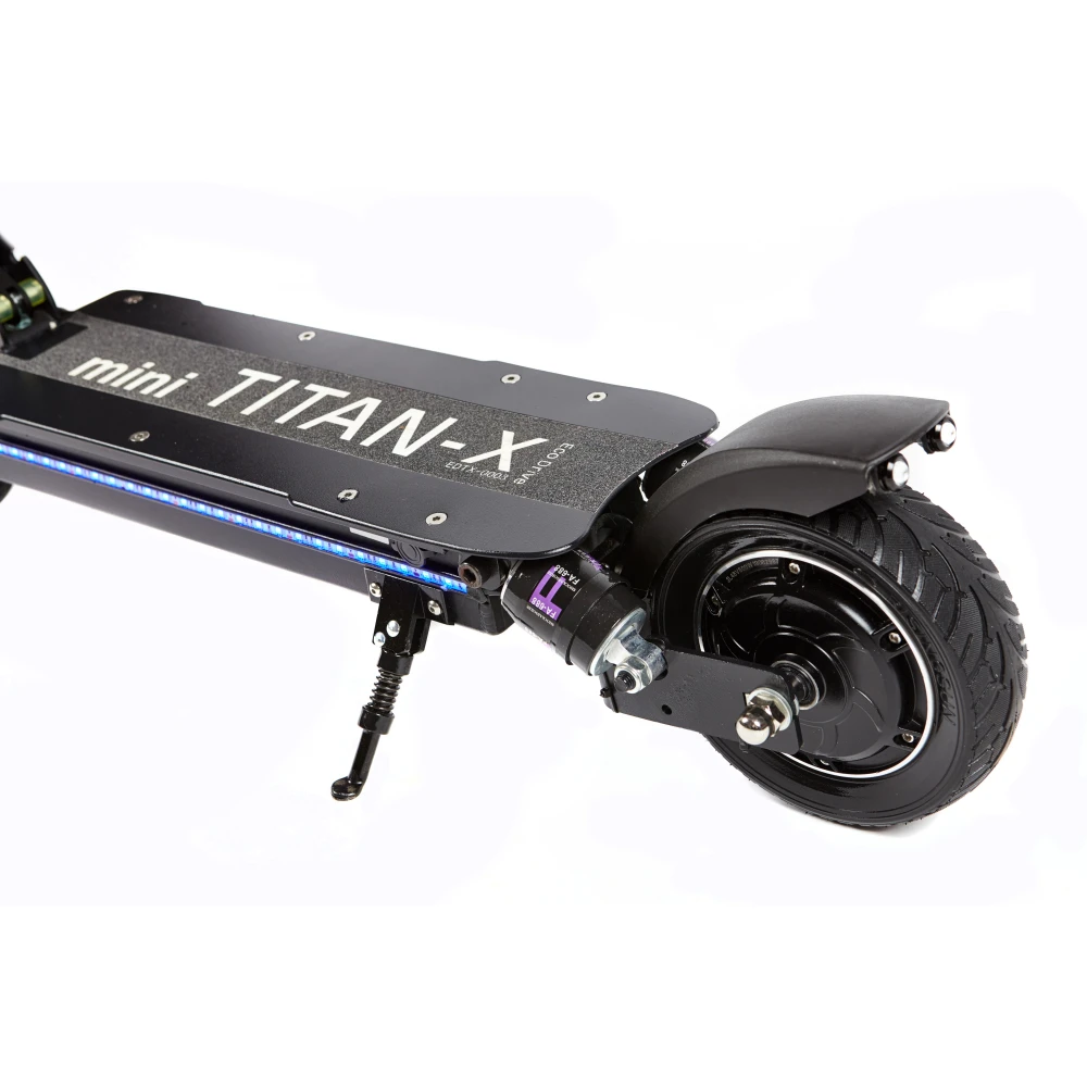 Eco Drive Mini имеет задний привод, мощность двигателя 500 Вт, он позволяет развивать максимальную скорость движения 50 км/ч. Транспорт маневренный и резвый. За счет емкого аккумулятора в 24 А*ч, электросамокат может проехать до 60 км пути. Агрегат отлично подойдет для повседневных поездок на работу, по делам, просто для активного отдыха.