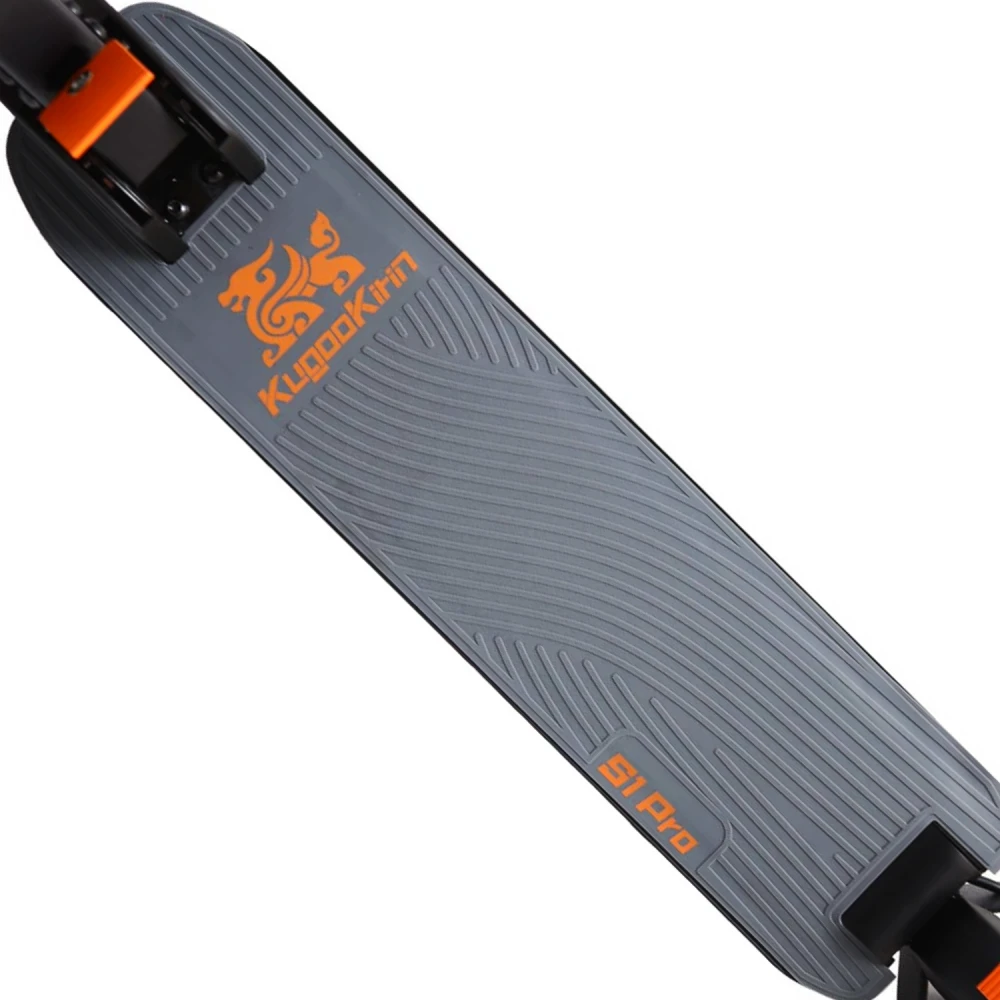 Также для наибольшего комфорта пользователя самокат имеет нескользящие ручки руля и бортовой компьютер с экраном, расположенным на руле. На дисплее можно отслеживать скорость, количество заряда аккумулятора, включать/выключать переднюю оптику и т.д. Для безопасного движения даже в условиях сумерек самокат оборудован передним и задним фонарями. Колёса этой модели обеспечивают ей высокую манёвренность, а непробиваемая конструкция позволяет плавно передвигаться по любой поверхности, в том числе и по влажной траве. Раскручивает эти колёса мощный 350-Ваттный электромотор, а за остановку отвечают практичные дисковые тормоза. Аккумулятор на Kirin S1 встроен в деку и имеет ёмкость 10 Ач. Всё это в совокупности разгоняет самокат до 25 км/ч и даёт проехать до 30 км на одной подзарядке. Зарядка аккумулятора осуществляется через специальный разъём в деке и в худшем случае может занять 7 часов. В комплекте к самокату, помимо документации и зарядного устройства, идёт набор шестигранников, чтобы всегда быть уверен в том, что все болты затянуты.