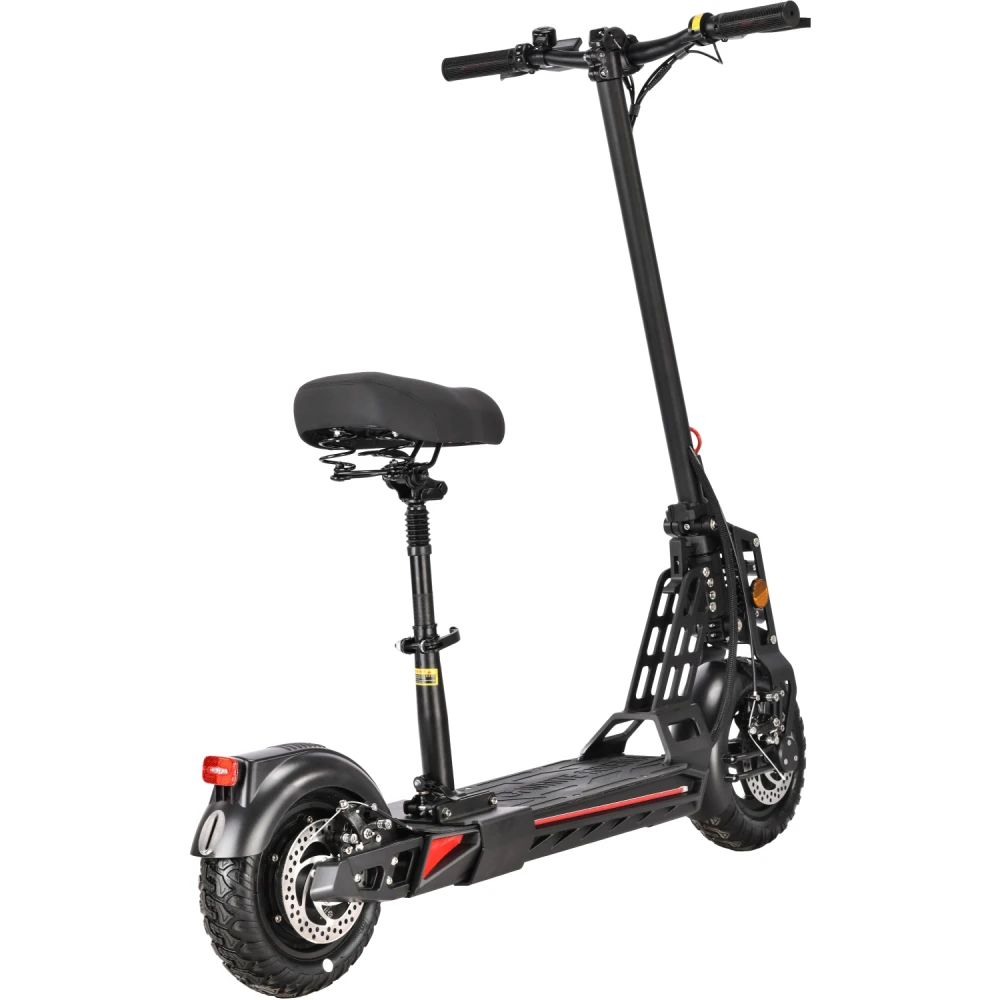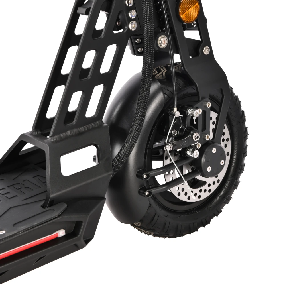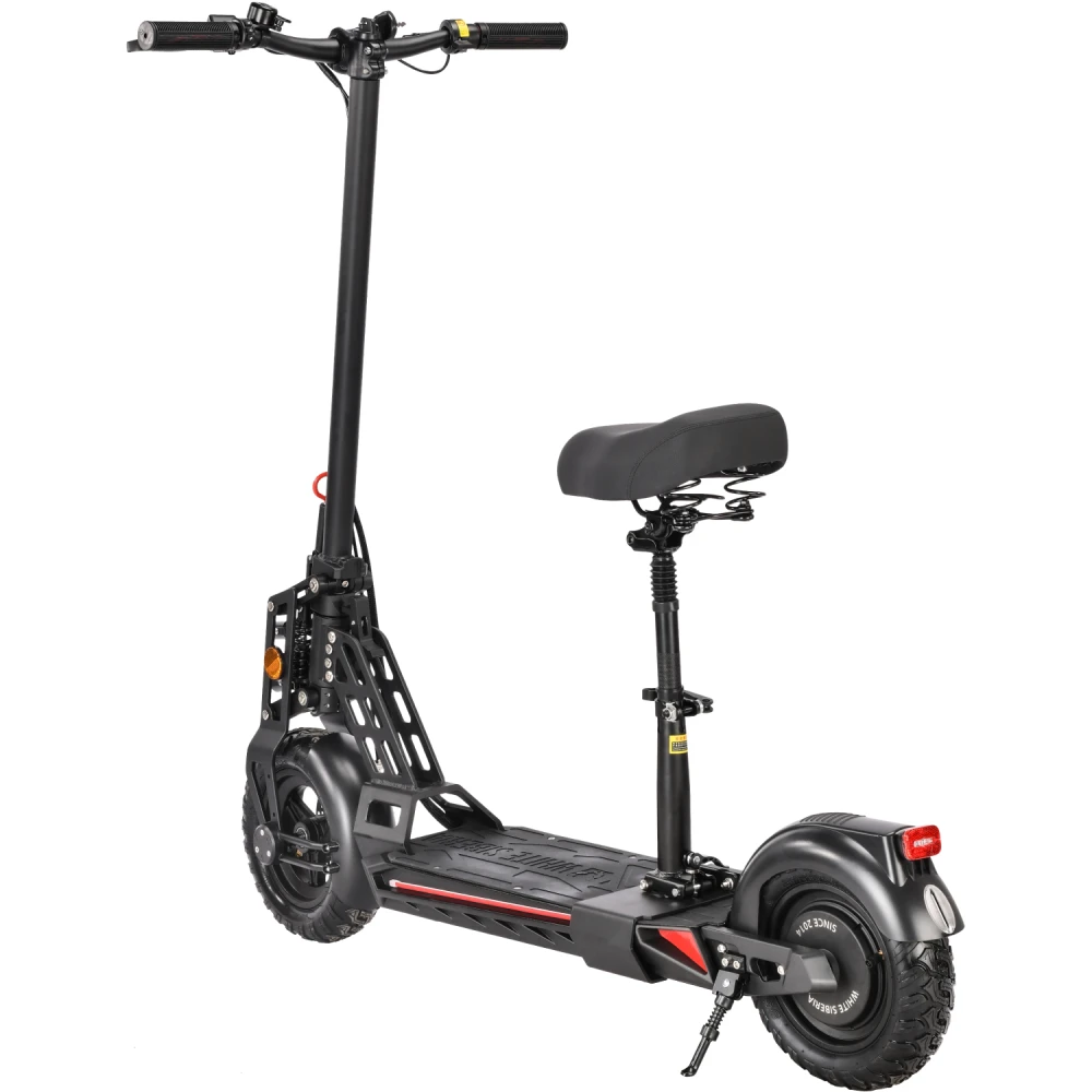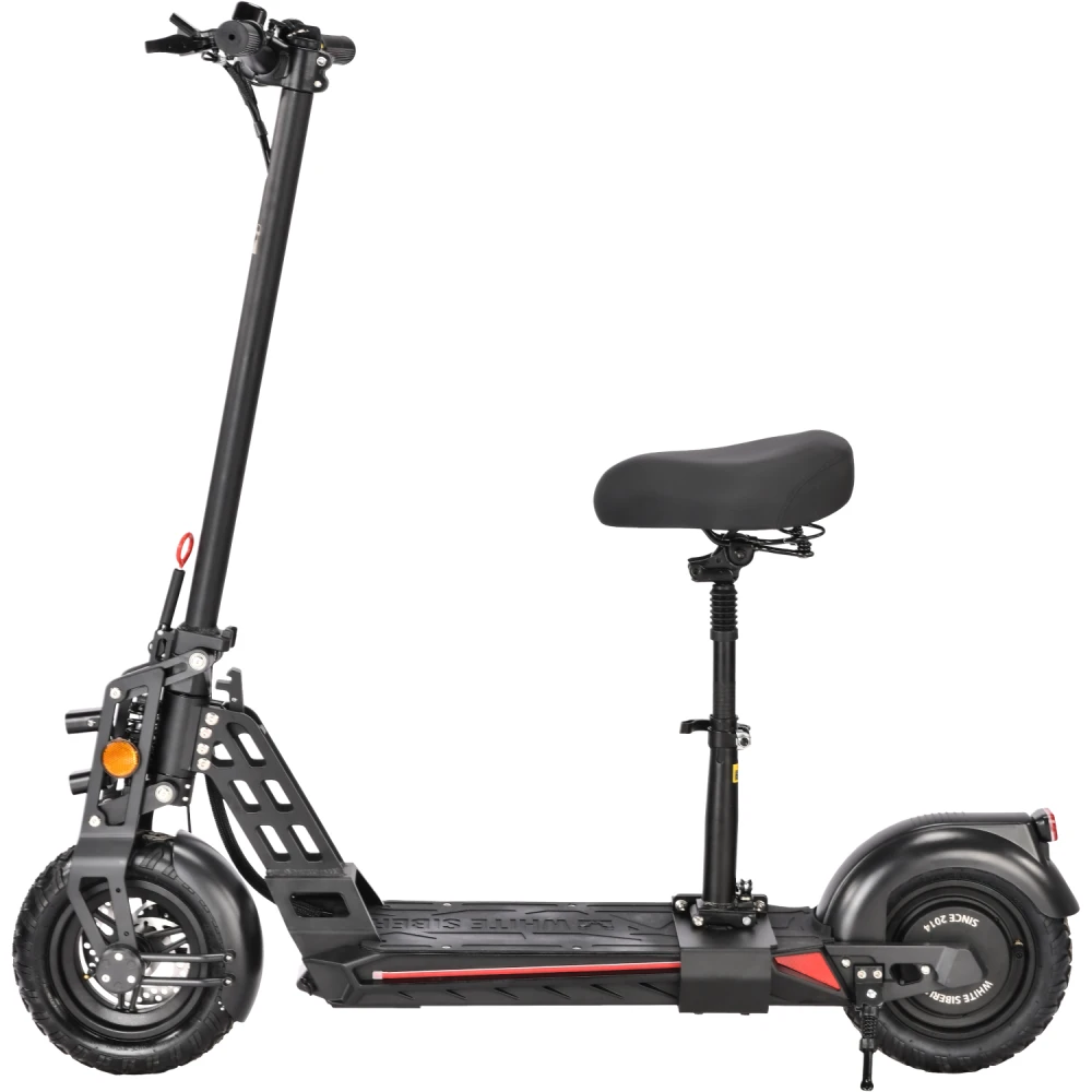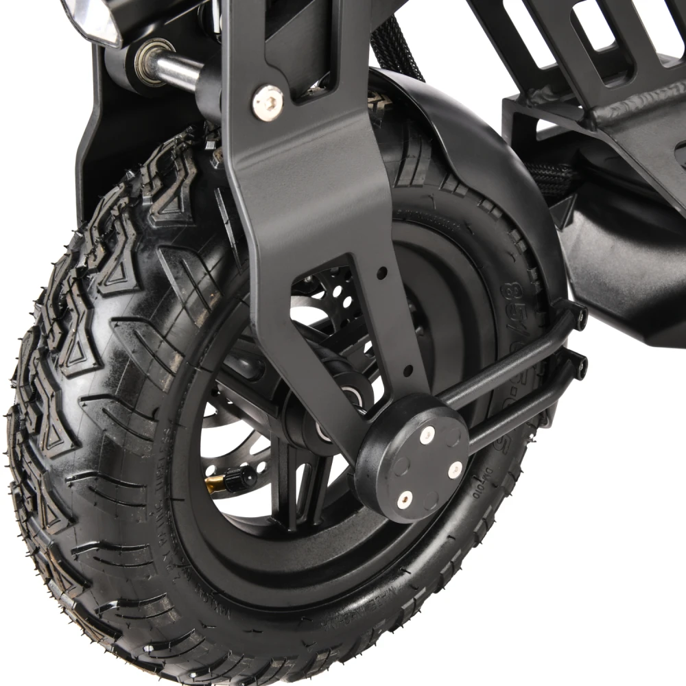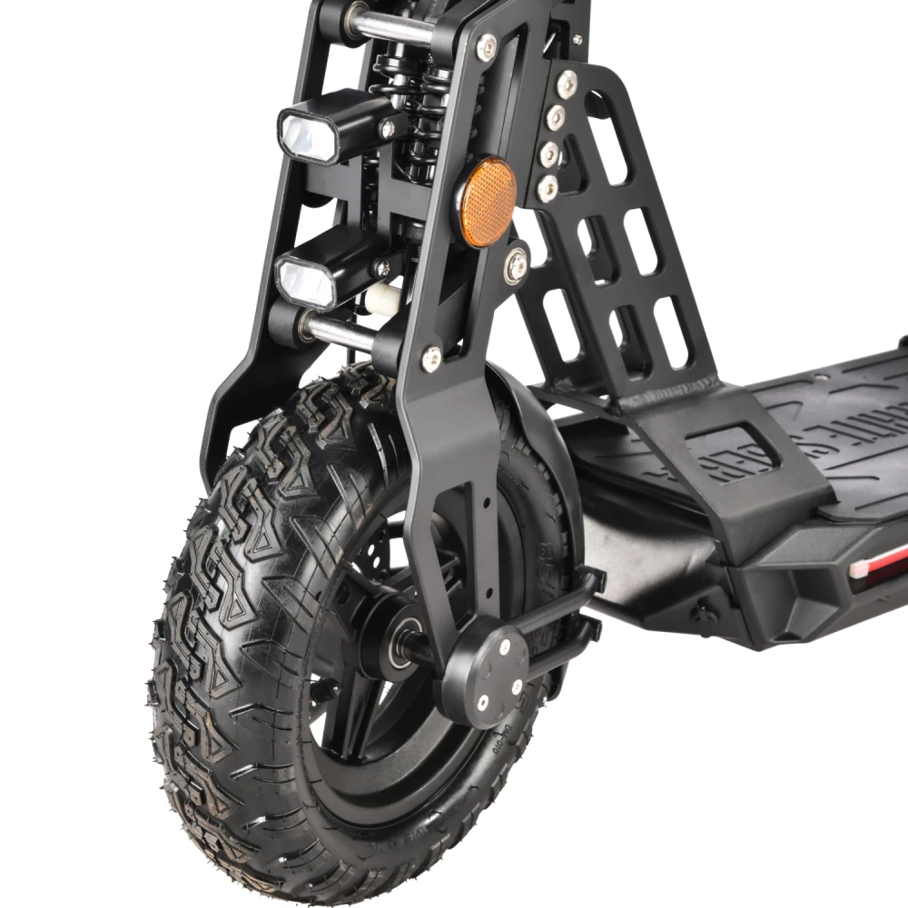 Техника оснащена удобным сиденьем, повторяющем анатомические части тела. При мощности мотора 1000 Вт максимально допустимая производителем скорость составляет 55 км/час. Запас хода электросамоката составляет 55 км. Время зарядки батареи – 8 часов.