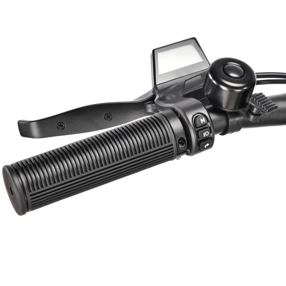 Электросамокат оснащен необходимыми комплектующими, обеспечивающими безопасность передвижения. Имеет дисплей для контроля заряда АКБ, скорости и других параметров. Удобная прорезиненная дека широкая, позволяет установить две ноги одновременно, не допускает соскальзывание ног. Аналогичной можно сказать про курок газа и грипсы.