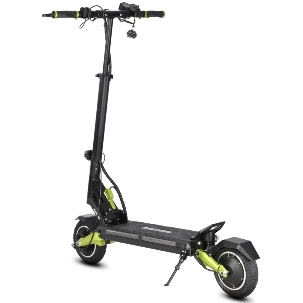 Модель весом 24 кг выдерживает максимальную грузоподъемность до 120 кг. Прочная и надежная. Оснащенность электросамоката движком на 2000 Вт и емкой батареей на 16 А*ч позволяет разогнаться до 55 км/час и без дополнительной подзарядки преодолеть расстояние до 65 км пути. Батарея надежно укомплектована в деке, защищена от механического воздействия, неблагоприятных погодных факторов. Платформа – широкая, не скользит. Надувные колеса размеров 8,5 дюймов не знают препятствий. Наличие бортового компьютера позволяет мониторить скоростные параметры, заряд батареи и протяженность расстояния. Надеемся вам понравилась полноприводная модель. Предлагаем приступить к оформлению заказа.