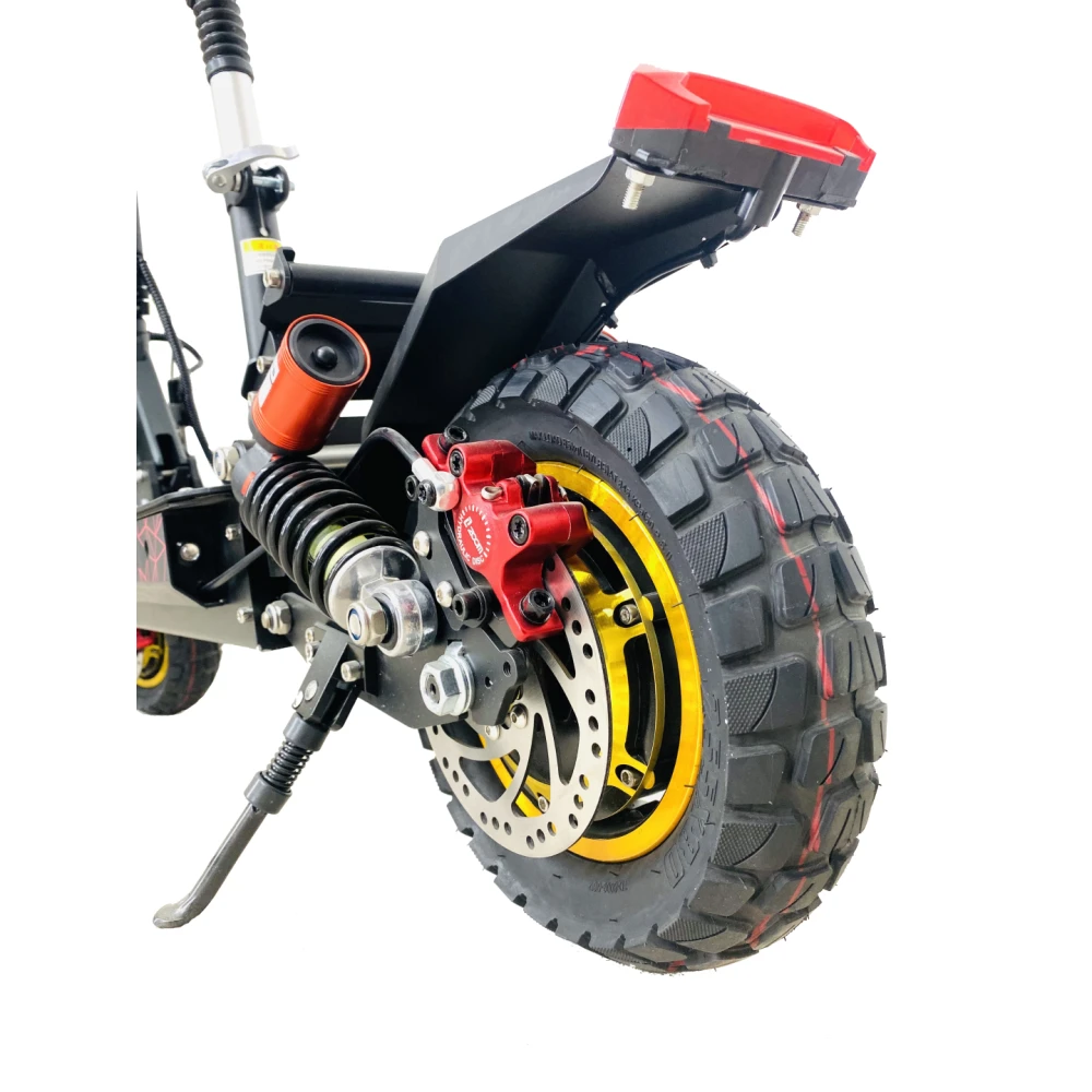 YOKAMURA RX2 оборудован колесами 10.5 дюймов, на каждом колесе протекторные покрышки, с глубоким рельефом. На переднем и заднем колесе установлены по два пружинных амортизатора, это делает ход мягким даже на бездорожье. В комплекте предусмотрено съемное сидение, во время длительных поездок вам будет комфортно, при желании можно его снять.