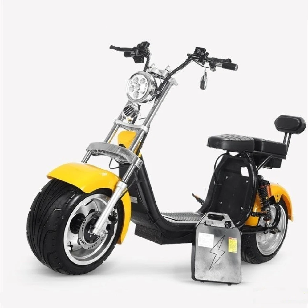 Прочная и простая конструкция Citycoco X11BR, мощное мотор-колесо в 2000Вт, передние и задние дисковые тормоза. Запатентованные широкие колеса с литыми дисками диаметром 18 дюймов, шириной 9.5. Позволяет чувствовать уверенность в управлении транспортным средством на прямой дороге и в повороте. Так же ширина колеса делает его очень устойчивым.