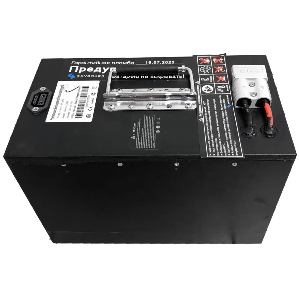 Он оснащен съемной батареей 50Ah 63V, также рассчитано дополнительное место для второй батареи 20-30A.