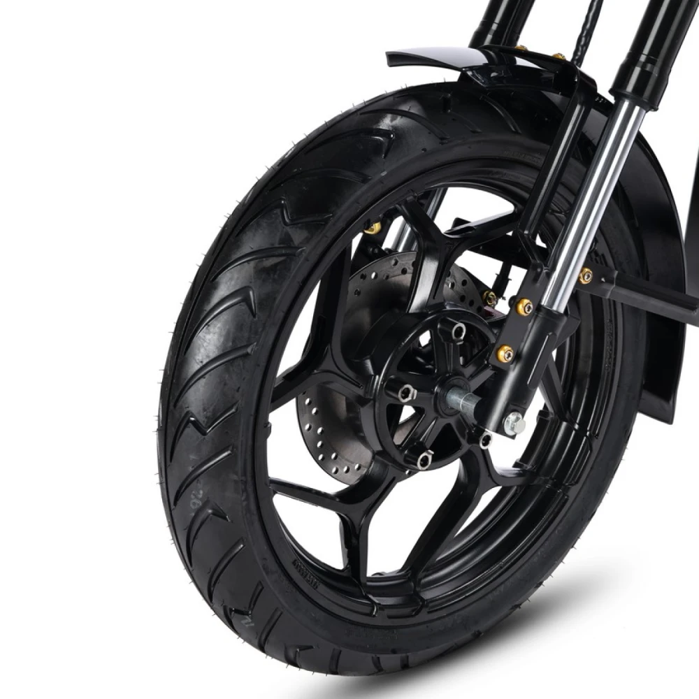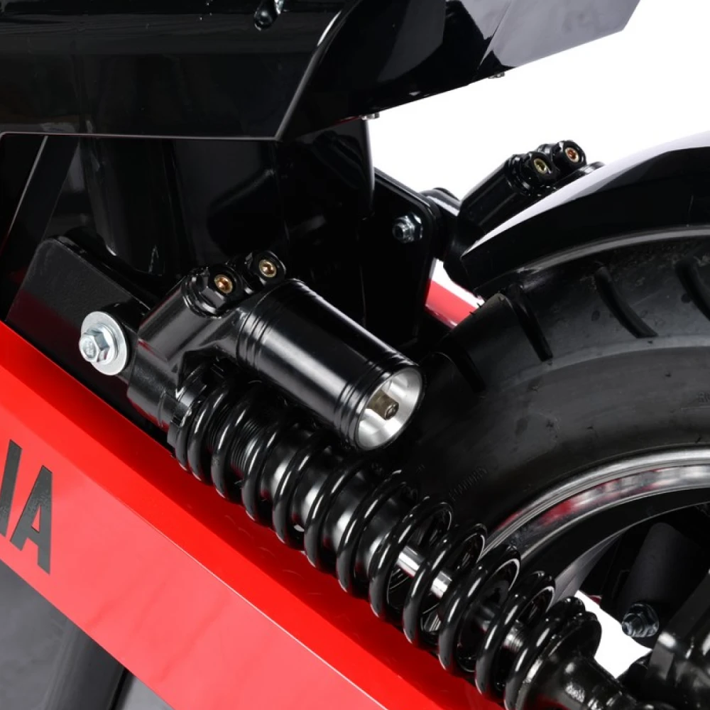 Рама выполнена из стали, что гарантирует прочность и долговечность конструкции, а вес устройства составляет около 100 кг. Для комфортной езды предусмотрена двухподвесная пружинная подвеска мотоциклетного типа, которая эффективно сглаживает неровности дороги. Тормозная система — дисковая гидравлическая, обеспечивающая надёжное и безопасное торможение в любых условиях.