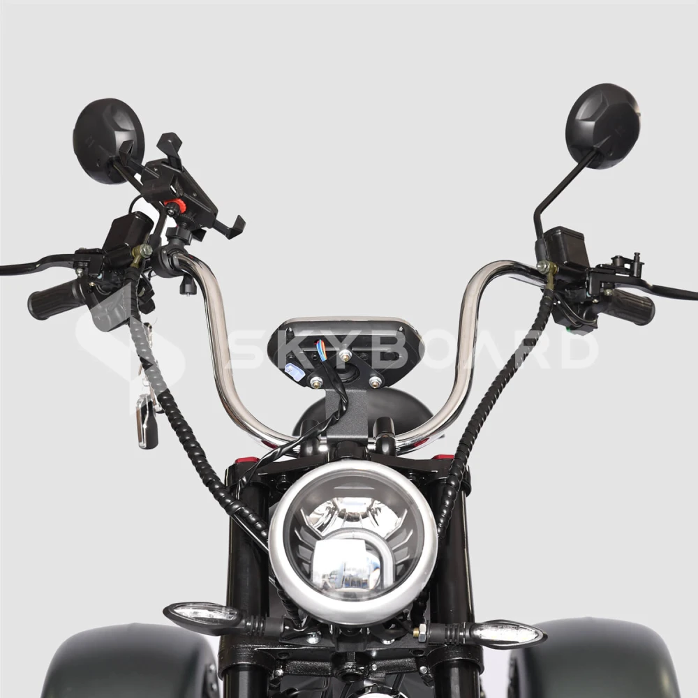 Электроскутер SKYBOARD TRIKE CHOPPER-4000 PRO FASTмощный и эксклюзивный, первое, что приходит на ум при визуальном ознакомлении с техникой. Изогнутая рама, брутальный дизайн наталкивают на мысли о максимальных скоростях и непередаваемых ощущениях. Со слов производителя предчувствие клиентов является правильным.