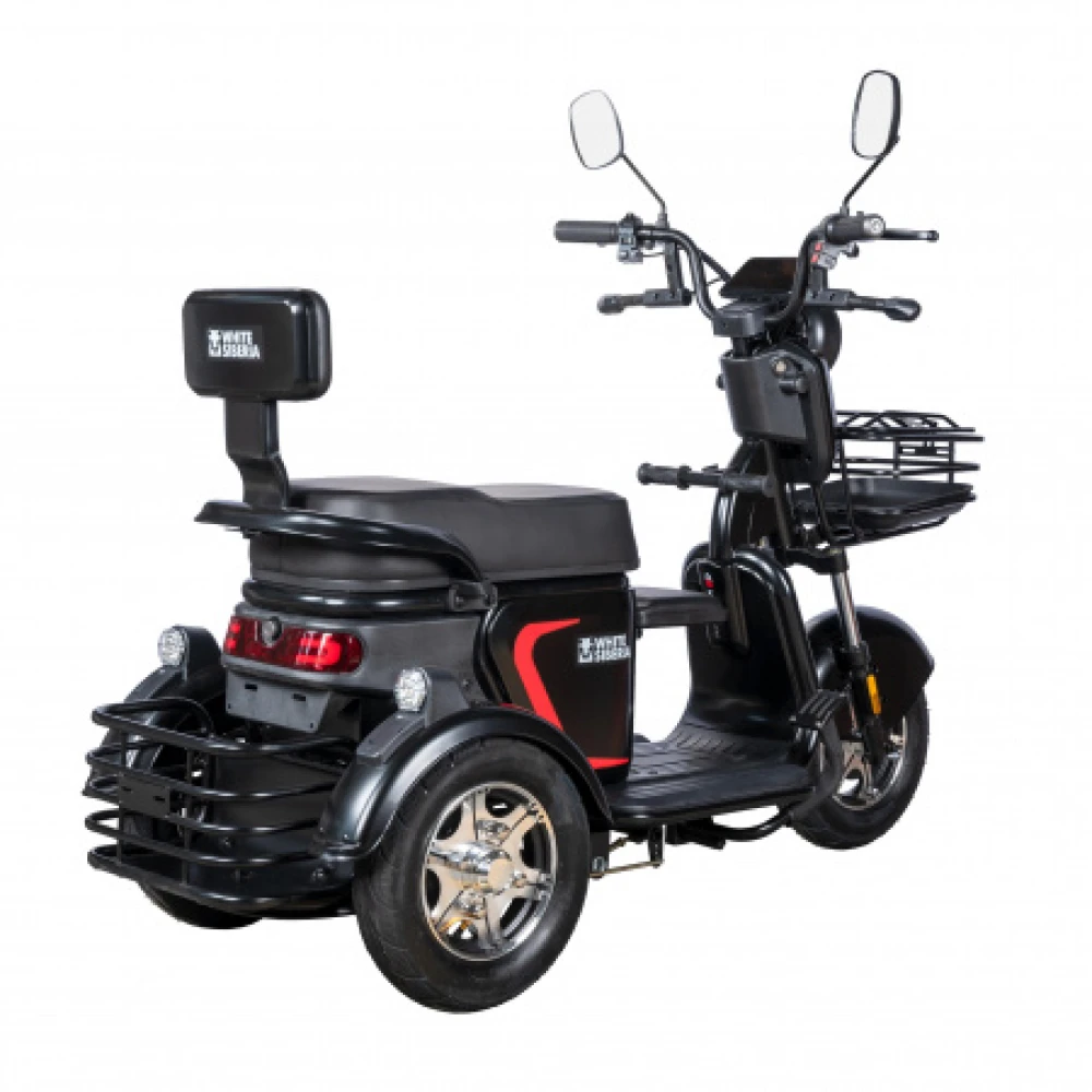 WHITE SIBERIA SIBTRIKE L 2000W – лидер продаж этого сезона. Удобный практичный электрический трицикл понравился семейным пользователям. Первое, что бросается в глаза, степень комфорта. Техника оснащена объемным сиденьем, одно из которых можно использовать в качестве пассажирского.