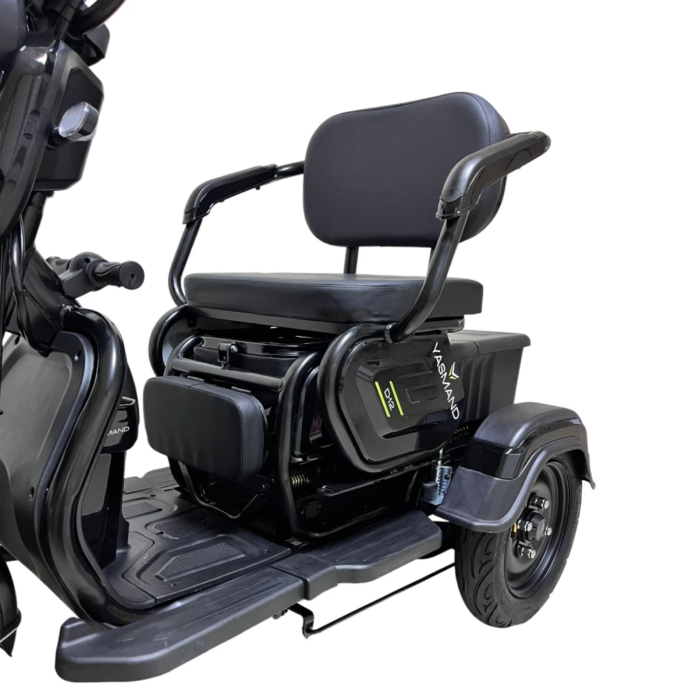 YASMAND D12 Li-ion — практичный семейный электротрицикл с высокой грузоподъёмностью, комфортной посадкой и современным Li-ion аккумулятором. Он хорошо подходит для повседневных городских поездок, семейных выездов и лёгких хозяйственных задач. В своём ценовом сегменте модель выделяется сочетанием комфорта, пробега и возможностей для перевозки ребёнка и багажа.