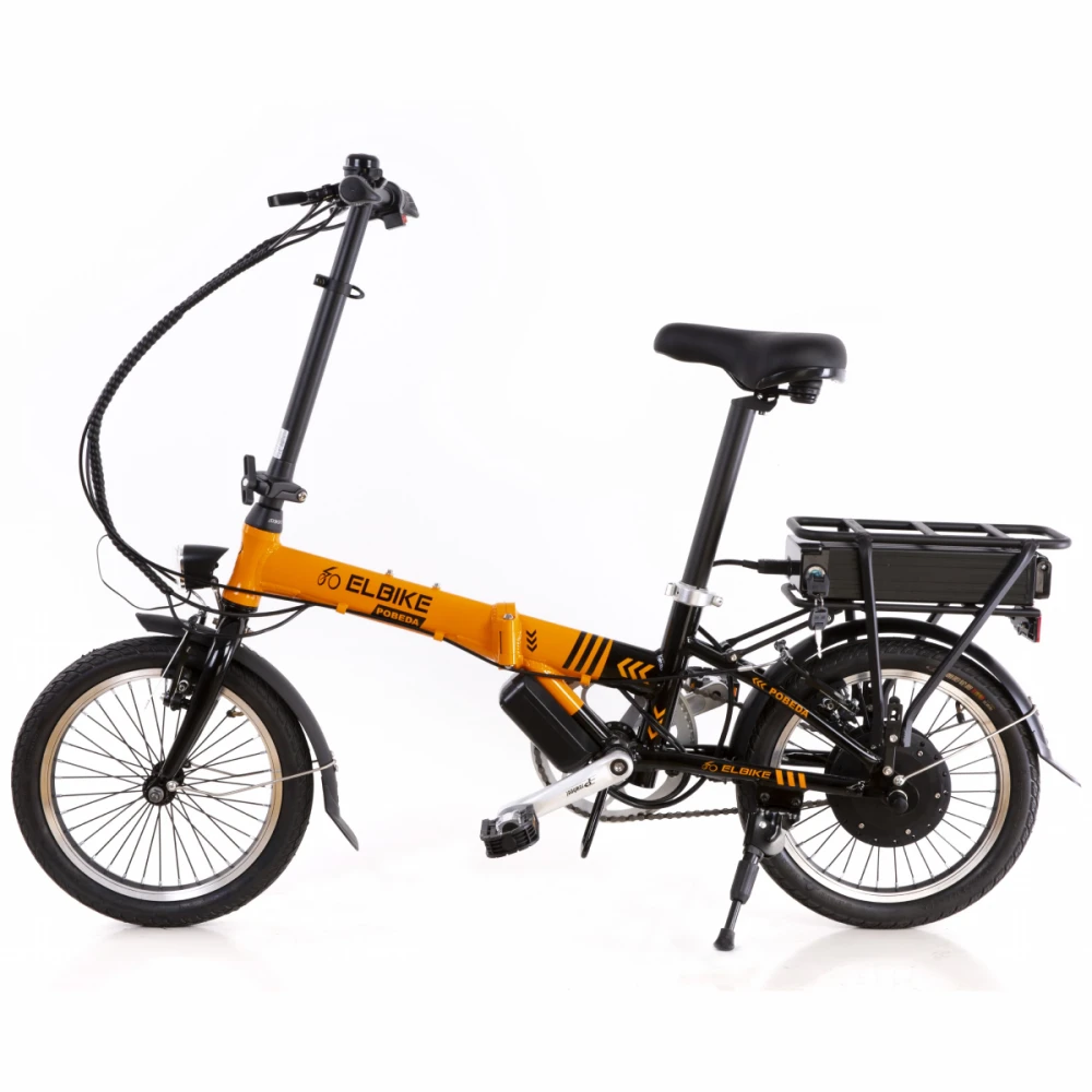 ЭЛЕКТРОВЕЛОСИПЕД ELBIKE POBEDA – идеальный вариант подарка на мероприятие любого рода, места подростков и взрослый. Компактный эргономичный велосипед грузоподъемностью до 110 кг, прост в использовании и обслуживании. Складывающаяся модель легко транспортируется, не вызывает проблем с хранением техники. Привлекательный дизайн в желто-черных тоннах и технические особенности делают модель заметной на фоне других. Купить транспортное средство выгодно, без посредников и наценок предлагает наш интернет-магазин.