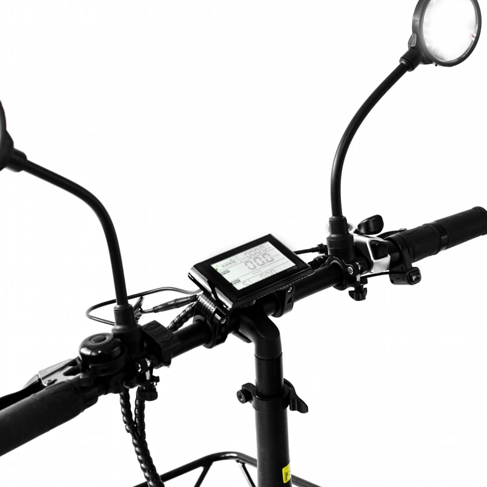 Алюминиевая конструкция рамы выдерживает нагрузки, прочная и надежная, не деформируется при эксплуатации в жестких условиях. При мощном электродвижке в 500 Вт и емкой аккумуляторной батареи – 10.4 А*ч байк способен разогнаться до 39 км/час и преодолеть расстояние до 70 км. Увеличить пробег можно воспользовавшись смешанным режимом.