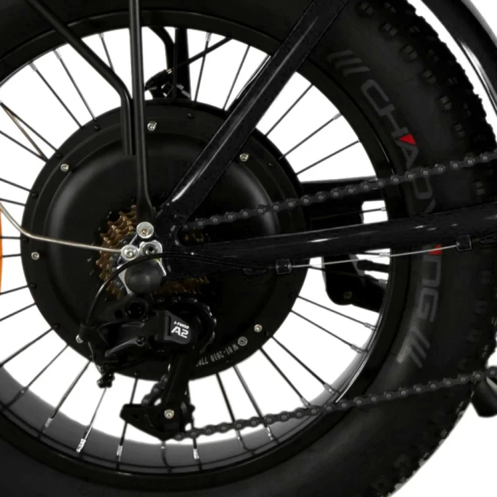 Двигатели изготовлены в соответствии с современными требованиями. Мощность двух моторов в пределах 1000 Вт, позволяет набирать разгон до 47 км/час. Техника также рассчитана на переход в педальный режим для улучшения скоростных характеристик и увеличения расстояния пути. Широкие надувные колеса позволяют легко преодолевать пересеченную местность и дорожные неровности. Модель подойдет для поездок по песку и снегу. Алюминиевая рама прочная и легкая, имеет складную конструкцию для простой транспортировки и хранения. Тормозная система усовершенствованная, состоит из дисковых тормозов.