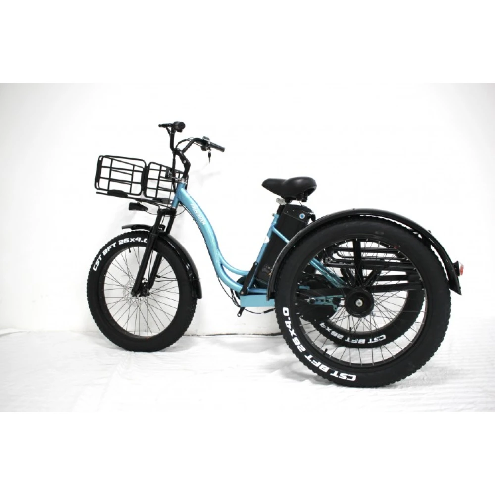 Электровелосипед GreenCamel Трайк-F (R26FAT 1000W 48V 20.3Ah) колесами FAT –востребованный вариант техники. Изготовлен в классических цветовых оттенках, не имеет ничего лишнего, прост в обслуживании и управлении. Купить электровелосипед сейчас, при приемлемой стоимости предлагает наш интернет-магазин.