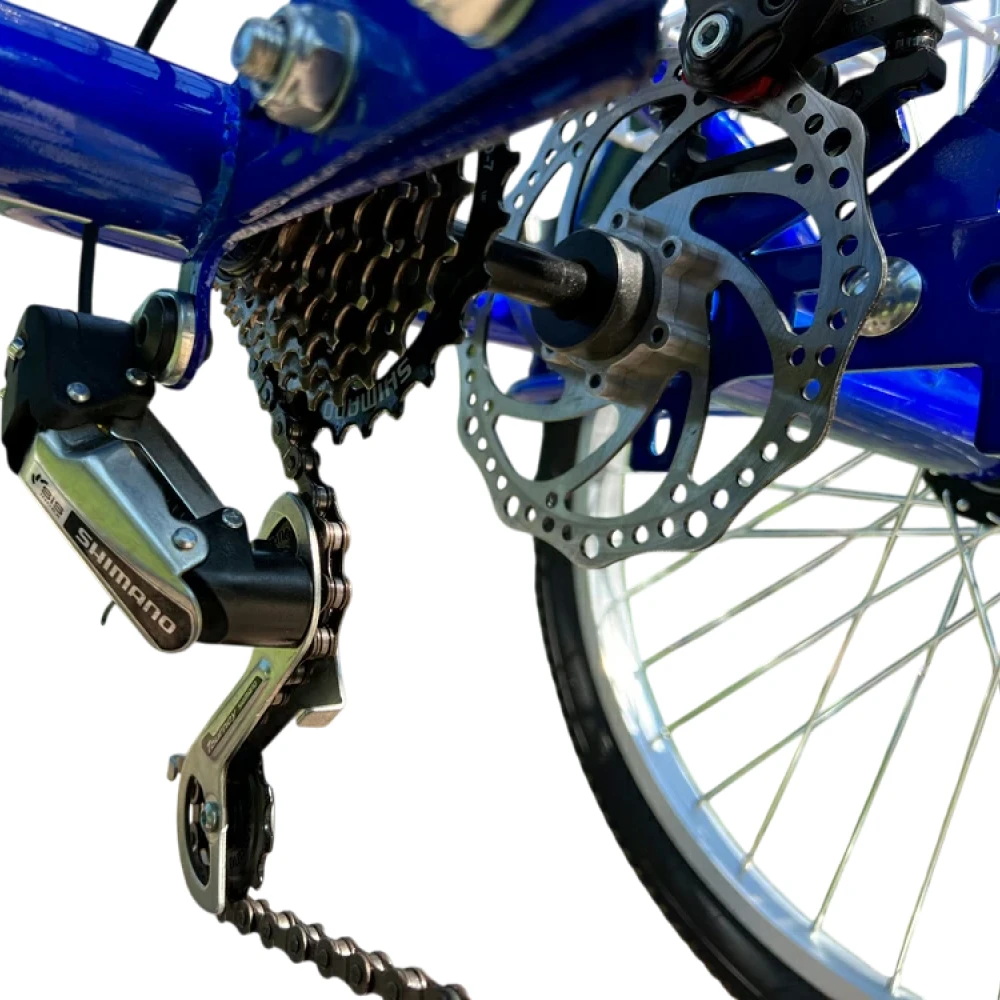 Мотор BLDC 350 Вт (переднее мотор-колесо): Разгон до 25 км/ч, подъём 15% под нагрузкой — уверенно на холмах. АКБ литиевый NMC 48V 12Ah: 576 Вт·ч, заряд 7-8 ч (2A), реальный пробег 40 км (город 30 км, груз 20 км). 3 режима ассистента: эконом (20 км/ч, 40 км), стандарт (25 км/ч, 30 км), мощный (25 км/ч, 25 км). V-brake спереди + диск сзади — тормозной путь 4 м. R24 шины — энергоэффективны на асфальте.