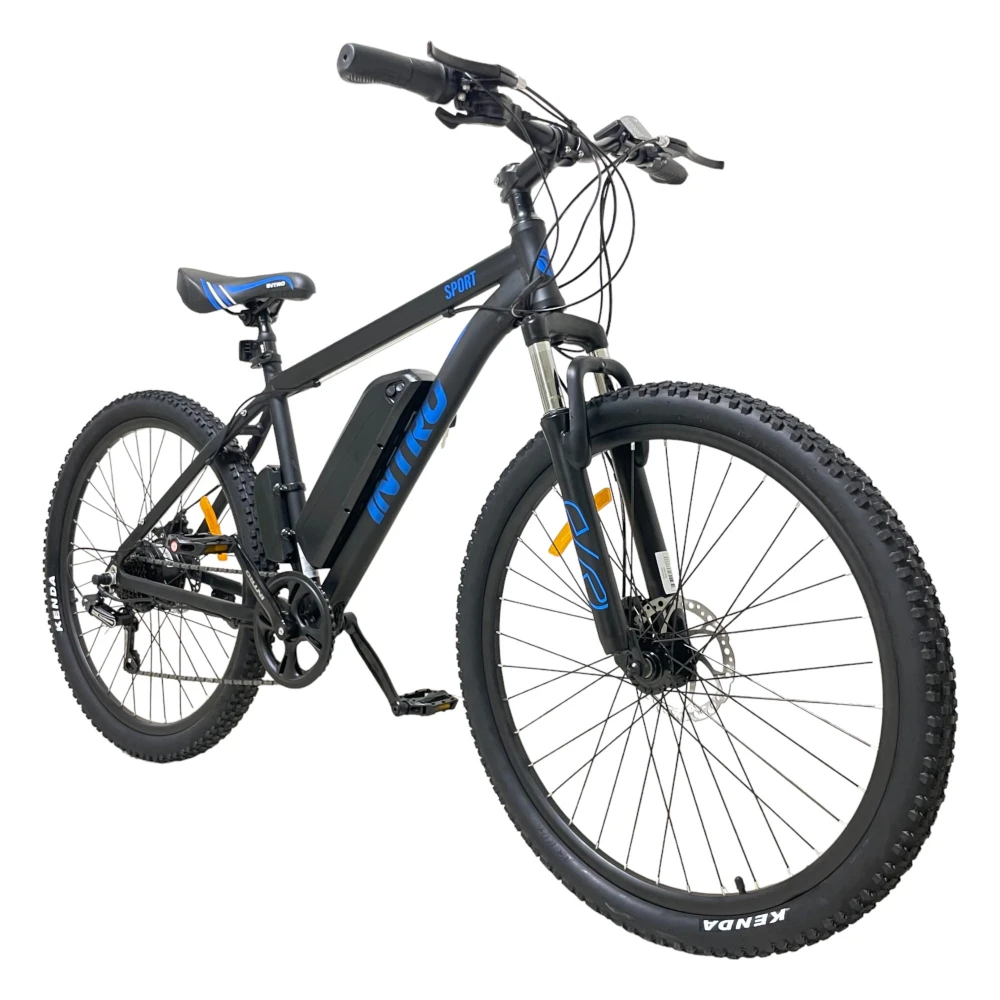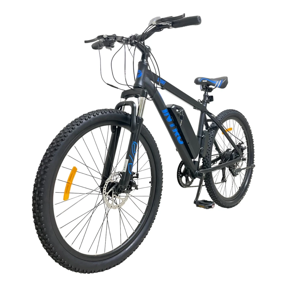 Электровелосипед INTRO Sport черно-синий - это уникальное транспортное средство, которое обеспечит вам комфортную и быструю поездку. С его характеристиками вы сможете покорить дальние расстояния без усилий.