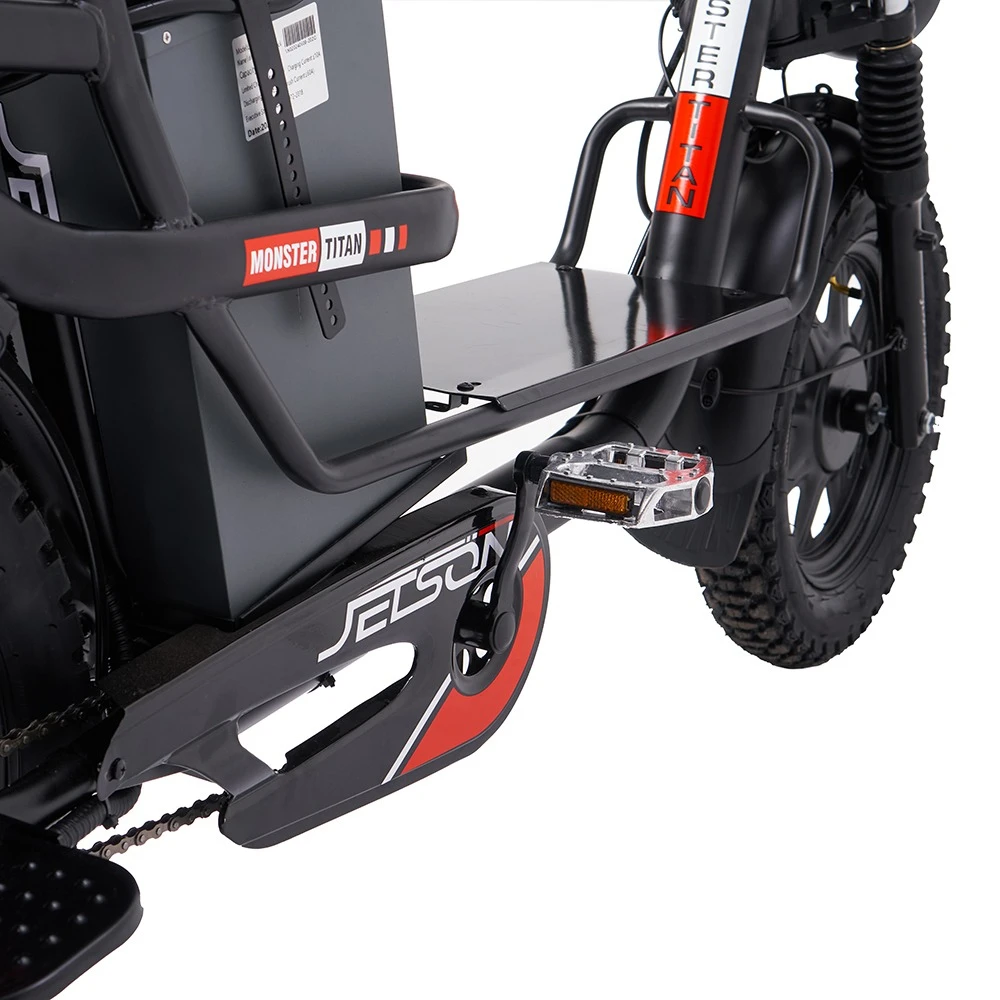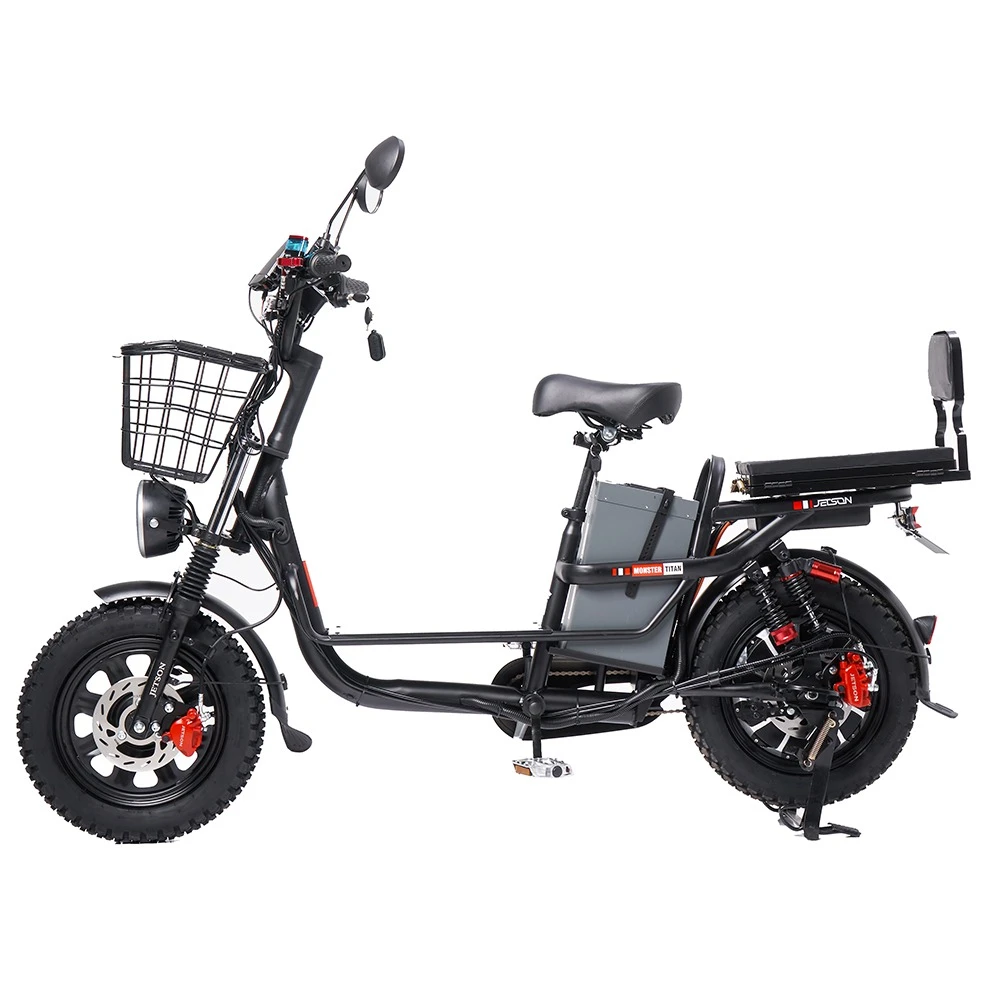Электровелосипед Jetson MONSTER TITAN — это идеальный выбор для тех, кто ищет мощное и надежное средство передвижения. С мощностью двигателя в 1200 Вт и аккумулятором на 60V и 30Ah, этот электровелосипед способен развивать скорость до 50 км/ч и обеспечивать запас хода до 110 км на одном заряде. Это делает его отличным вариантом как для городских поездок, так и для загородных маршрутов.С всесезонными покрышками и амортизацией, Jetson MONSTER TITAN легко справляется с различными дорожными условиями, обеспечивая комфорт и безопасность. Его 16-дюймовые колеса и прочная конструкция гарантируют стабильность и надежность на любой поверхности. Время зарядки аккумулятора составляет всего 8 часов, что позволяет быстро подготовиться к новым приключениям.Электровелосипед представлен в стильном черном цвете и оснащен удобной корзиной спереди, что делает его практичным для повседневного использования. Дополнительное сиденье для второго пассажира и крепкая подножка добавляют удобства, а яркая фара обеспечивает отличную видимость в темное время суток. Jetson MONSTER TITAN — это не просто транспортное средство, а ваш надежный партнер в любых поездках!