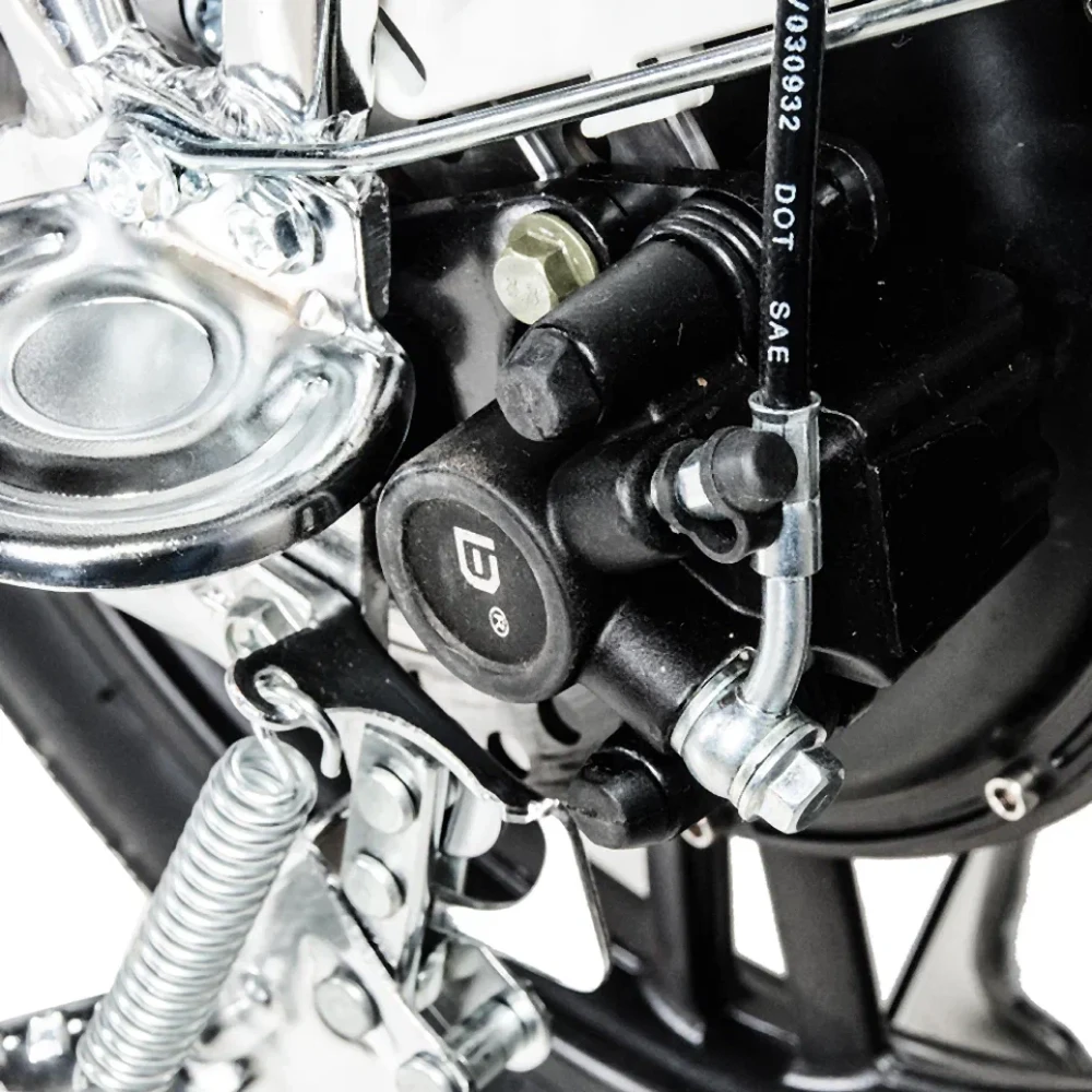 Jetson V8 PRO также оснащен отличной системой тормозов. Задний тормоз выполнен в виде гидравлического дискового тормоза, а передний - в виде механического барабанного тормоза. Это обеспечивает надежное и эффективное торможение даже при высоких скоростях.
