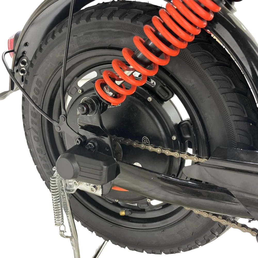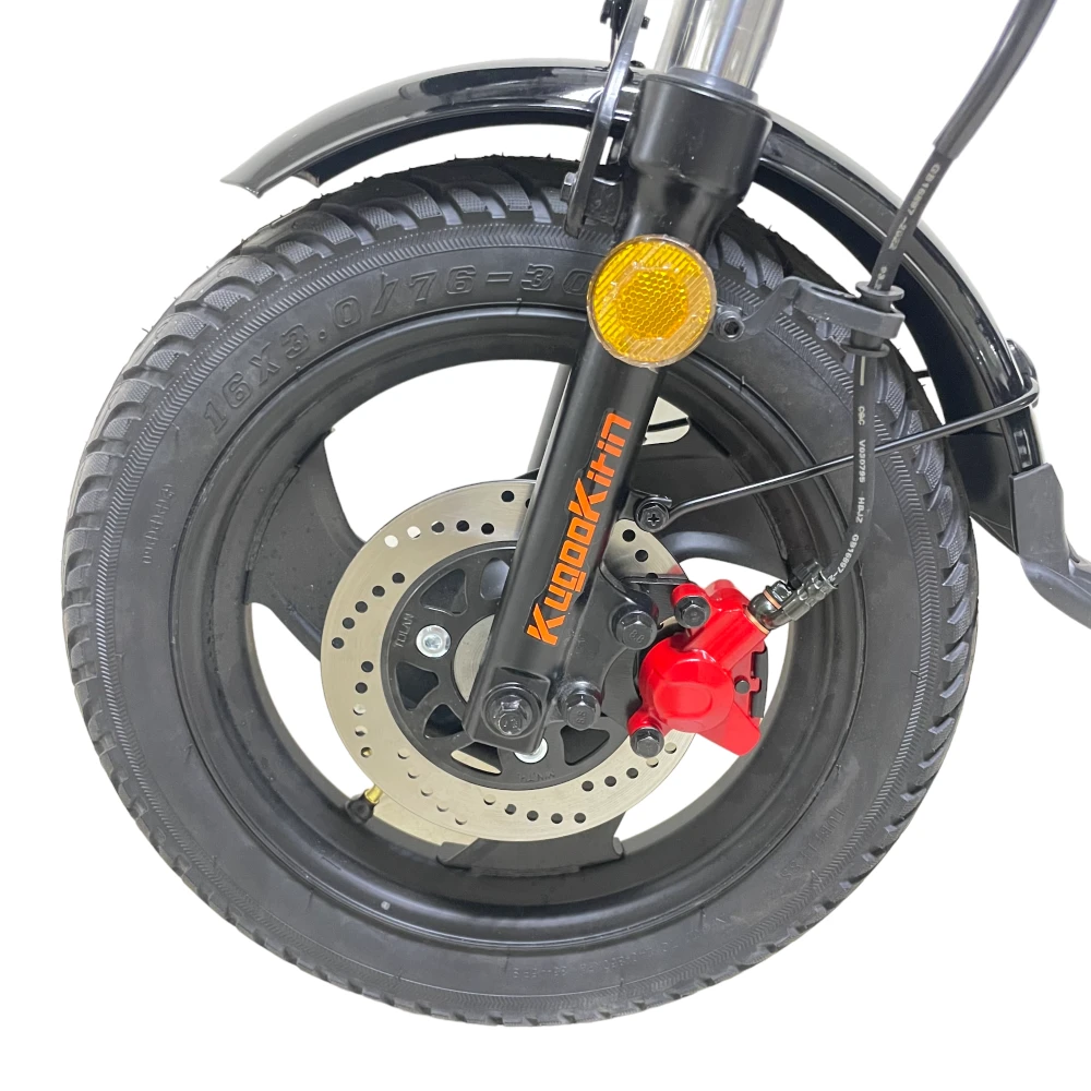 500W задний привод до 55 км/ч 60V / 28.6Ah пробег до 80 км нагрузка до 150 кг 16×3″ колёса гидравлика