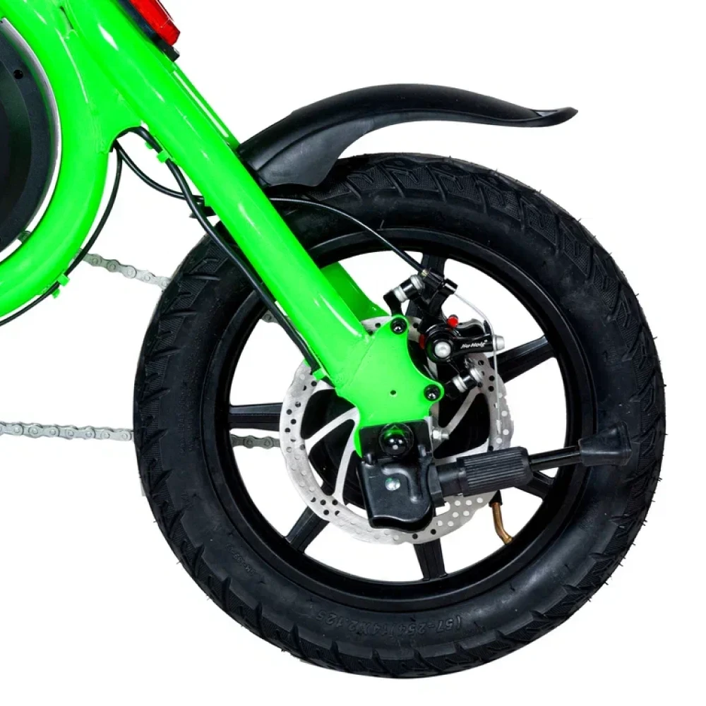 Зеленый цвет этого электровелосипеда придает ему стильный и современный вид. Он привлекает внимание и позволяет выделиться среди других транспортных средств на дороге.