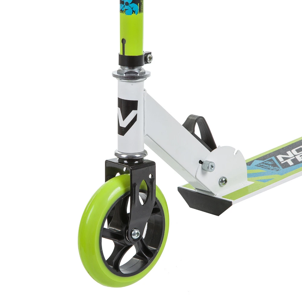 Сзади установлен ножной тормоз, который позволяет быстро остановиться при необходимости. Переднее колесо диаметром 145 мм и заднее колесо диаметром 125 мм обеспечивают отличную маневренность и устойчивость на любых поверхностях. Бело-зеленый дизайн добавляет яркости и стиля, делая каждую поездку увлекательной и безопасной.