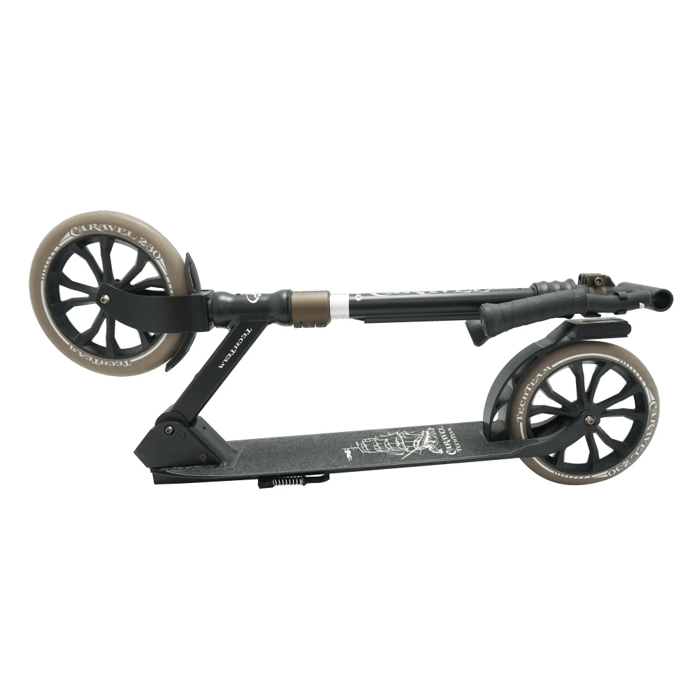 САМОКАТ TECH TEAM CARAVEL 230 коричневый с брендовыми надписями рассчитан на активных подростков 9+ летнего возраста массой тела до 50 кг. Модель предназначена для время провождения в пределах городской местности и парковой зоны. Характеристики техники рассчитаны на длительную эксплуатацию. Купить самокат по демократичной стоимости, выгодно, предлагает наш интернет-магазин.