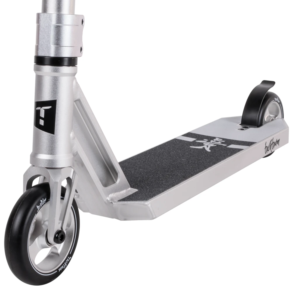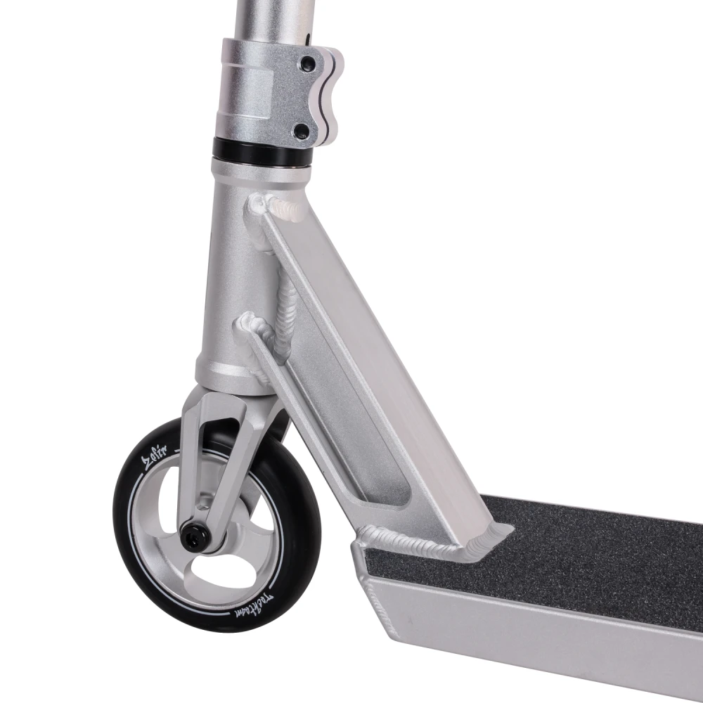 Трюковой самокат tech team Zefir 2023 Черный – лучшее предложение этого года. Модель изготовлена с учетом пожеланий трюкачей. Выглядит стильно, современно. Техническая часть выдерживает максимальные нагрузки без последующей деформации, обещает максимальный разгон и лучшее маневрирование. Приобрести самокат по цене производителя, воспользоваться бесплатной консультационной поддержкой предлагает наш интернет-магазин. Рулевая часть изготовлена из алюминиевого сплава 7003 с термообработкой T6, послушная и прочная, предназначена для выполнения трюков любого класса сложности. Соединяется с декой с помощью компрессии IHC и двухболтовыми зажимами. Прорезиненные грипсы повторяют анатомическое строение руки, увеличивают хват и уверенность пользователя, исключают соскальзывание рук и дискомфорт. Дека размерами 52 смх12 см – нескользящая, обеспечивает максимальную устойчивость стоп при выполнении прыжков. 110мм колеса с алюминиевыми дисками и параметрами жесткости 88А обещают отличный разгон. Приобретение самоката никого не оставит равнодушными, насытит жизнь адреналином, улучшит спортивные результаты. Для заказа самоката по разумной стоимости сейчас предлагаем связаться с менеджером интернет-магазина онлайн или по телефону.