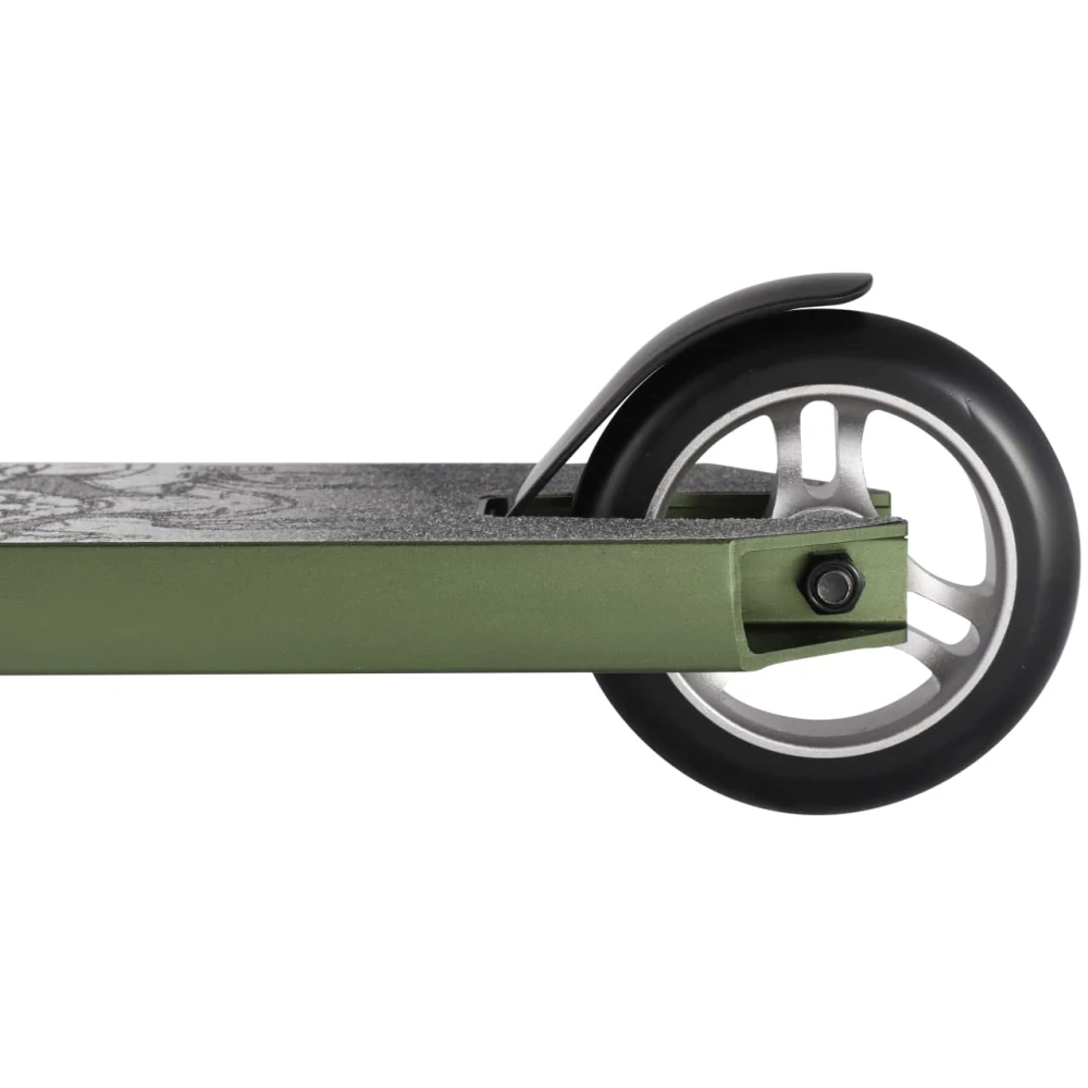 Самое важное это колеса, чаще всего можно встретить трюковые самокаты с колёсами диаметром в 100ми, 110 мм и 120мм. На данной модели диаметр составляет 110мм. Это то что нужно для идеального трюка, ведь это диаметр придаёт большую устойчивость и маневренность вашего самоката. Колеса совершают вращение на подшипниках ABEC 9. Это прекрасный выбор для активного времяпрепровождения.