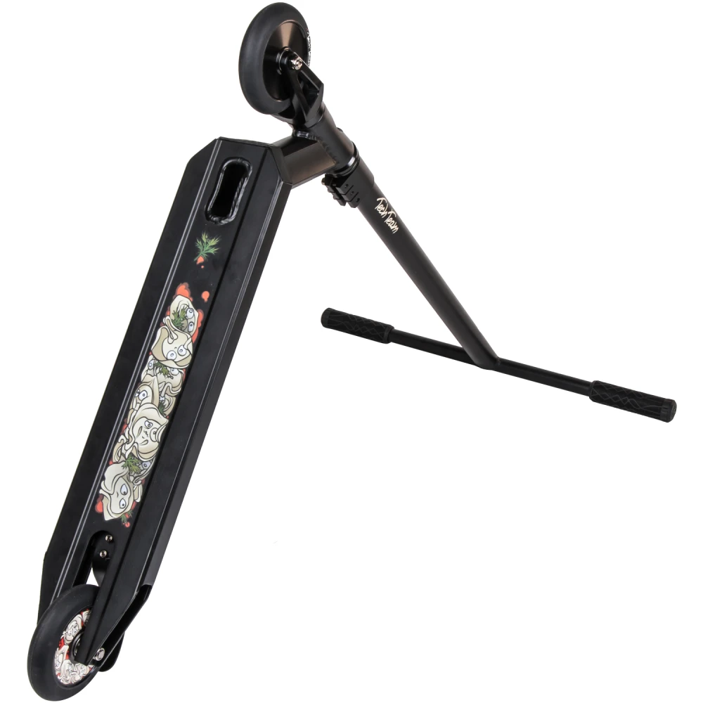 Ощутить свободу передвижения на специально отведенных зонах и парках позволяет малый вес (3,9 кг) транспортного средства. Трюковой самокат оснащен крепким и надежным стальным корпусом. Платформа для ног облегченная, изготовлена из прочного алюминия. Модель подходит для любого стиля езды. Оригинальная расцветка техники и необычный рисунок понравится самым требовательным райдерам. Производитель позаботился о скоростных характеристиках самоката. Техника мгновенно набирает скорость. Легко и быстро остановиться в экстремальной ситуации позволит наличие задней ножной тормозной системы.