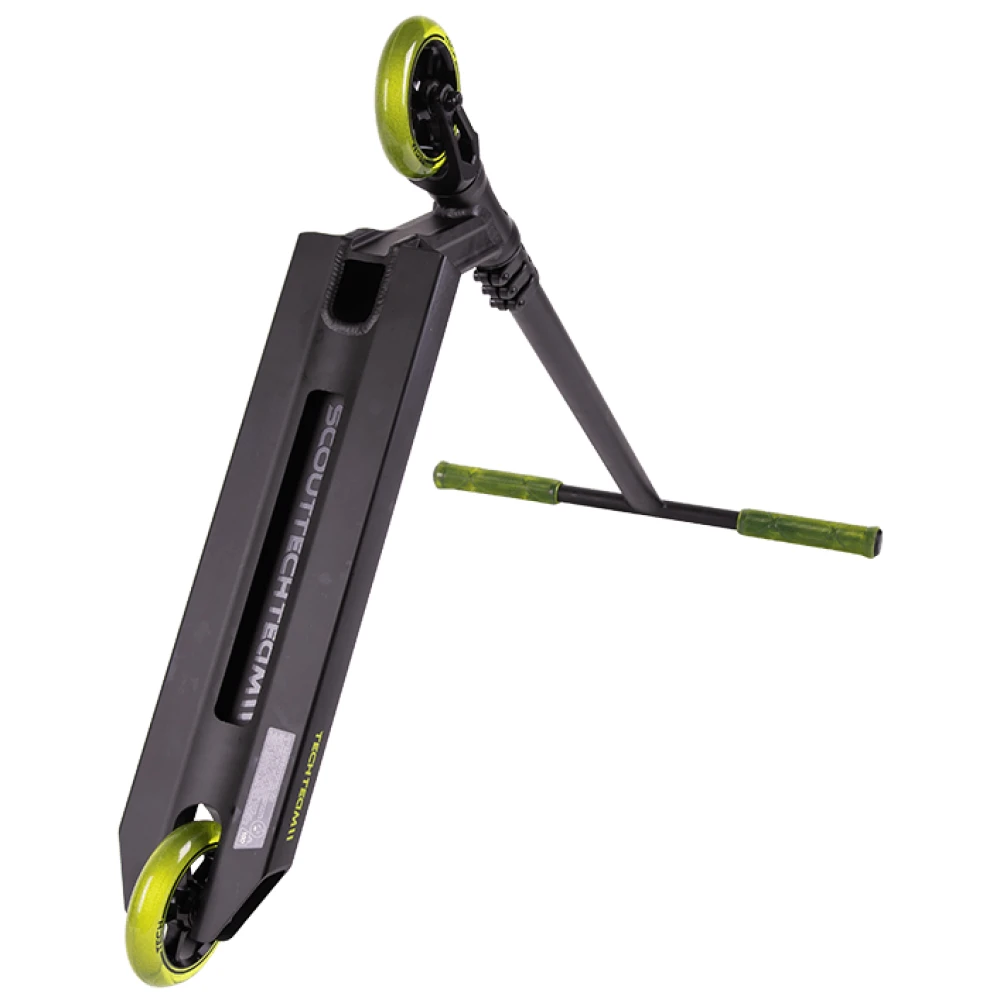 На этапе изготовления компания tech учла ошибки предыдущей линейки. Самокаты tech для начинающих райдеров изготовлены из высокопрочного надежного материала. Парковый самокат имеет алюминиевую деку габаритами 49х12 см с футспейсом 34 см. Оснащенность team scout конкейвом позволяет осваивать трюковые элементы, контролировать действия ездока. Трюковый самокат tech team имеет Т-образную форму руля. Ширина руля составляет 54см. Высоты руля от зажима (61,5 см) достаточно для ездоков начального уровня. Базовая модель techteam scout оснащена накатистыми полиуретановыми колесами с металлическим сердечником, промышленными подшипниками Abec 9. Каждый из трюковых элементов гарантирует максимальный разгон, важный для каждого трюкача.