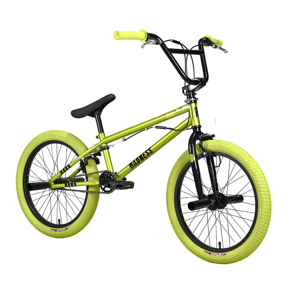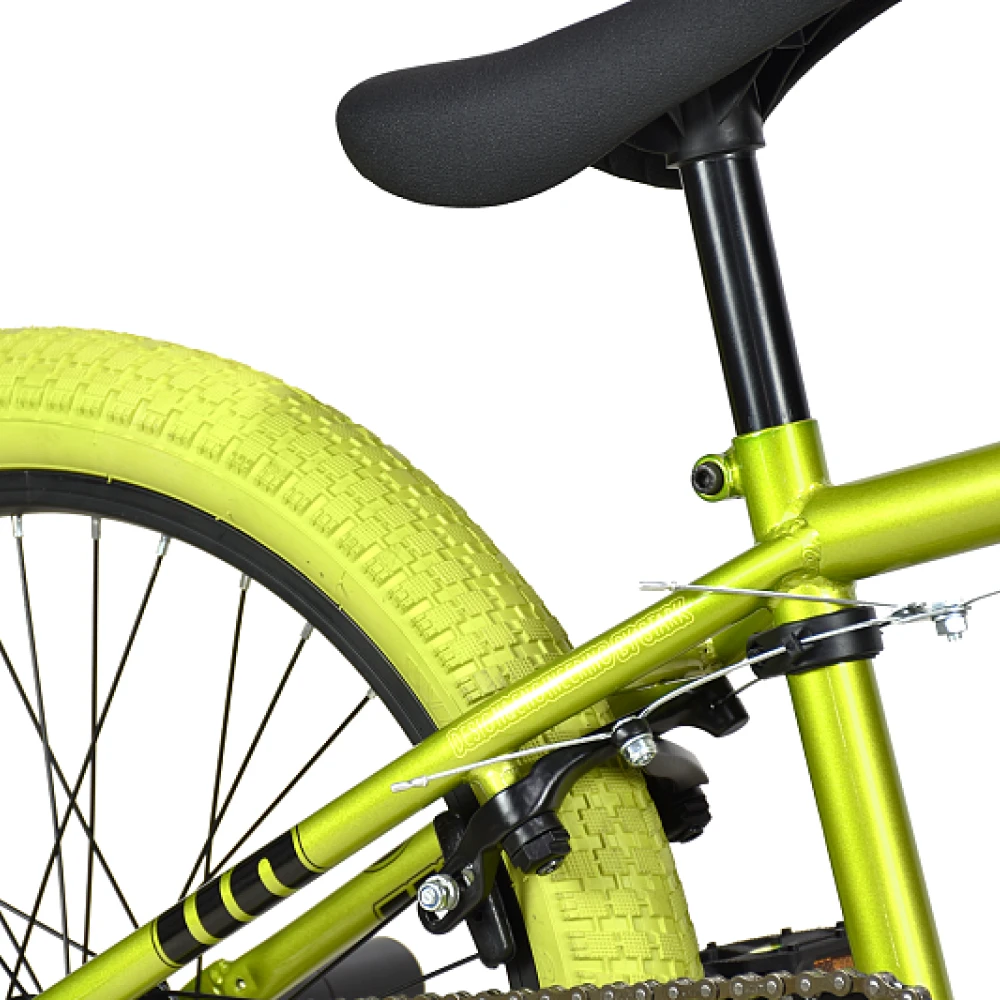 BMX велосипед Stark Madness 3 2024 года выделяется своим оригинальным зеленым металлик цветом рамы и зелеными хаки покрышками. Стальная рама Hi-Ten 13A весом 14,3 кг и размером 9 дюймов совмещает в себе прочность и легкость. Ободные клещевые тормоза Sparkle U-969D и жесткая вилка Stark Rigid обеспечивают безопасность и уверенность на трассе, а 20-дюймовые колеса подчеркивают экстремальный стиль. Резиновые грипсы XHH XHG117 и стальной руль Intek ITC-6665 гарантируют комфорт при каждой поездке. Седло Aerj A-6609 и цепь KMC Z-410 обеспечивают надежность в использовании. Втулки Kung Teng AJ9R/KT135F подчеркивают эстетику этого BMX велосипеда, делая его незаменимым для любителей экстремального катания.
