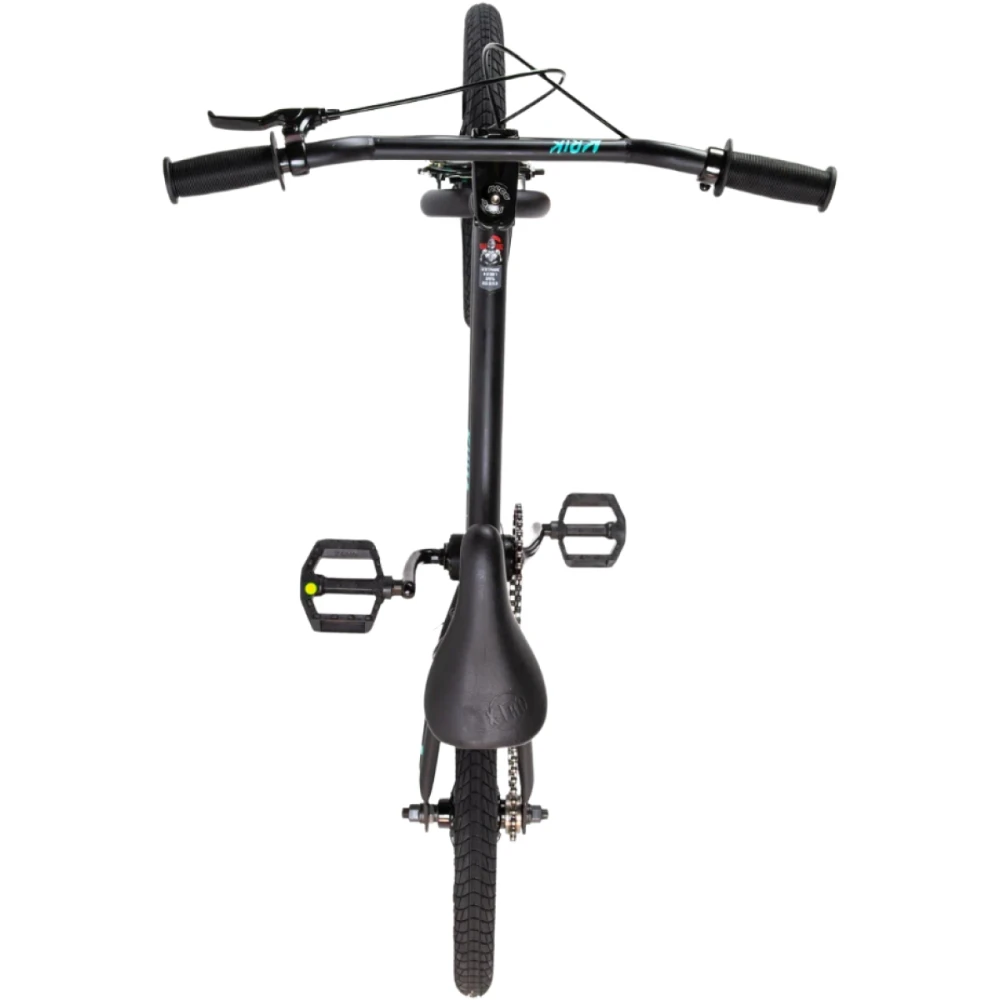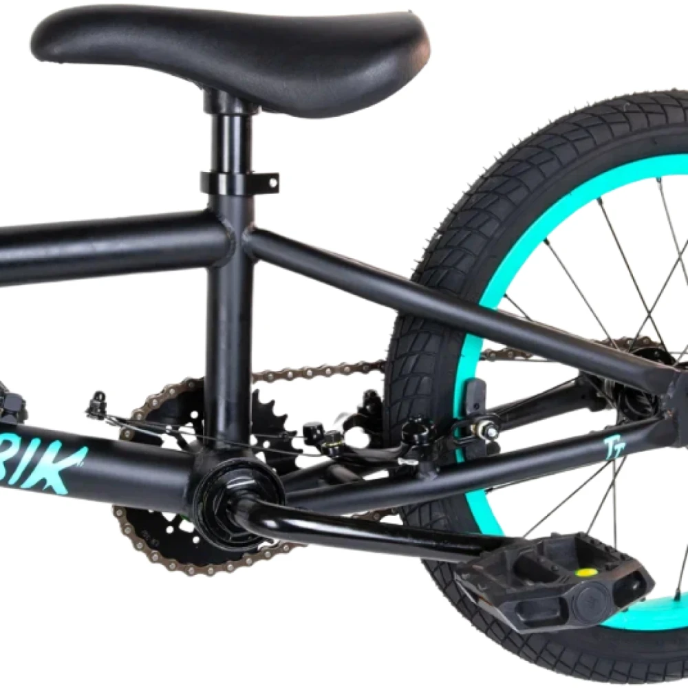 Техника имеет небольшой вес (10 кг), оснащена 16-дюймовыми колесами и аналогичной рамой. Модель обустроена пластиковыми удобными педалями (1/2 дюйма), седлом из эко-кожи, повторяющим анатомические части тела, снимающим напряжение позвоночника, минимизирующим риск травмирования. Безопасность ездока обеспечена профессионализмом, передней и задними клещевыми тормозами, удобной рулевой частью. Удобные прорезиненные грипсы 150 мм, TRP минимизируют риск соскальзывания рук при выполнении трюков.