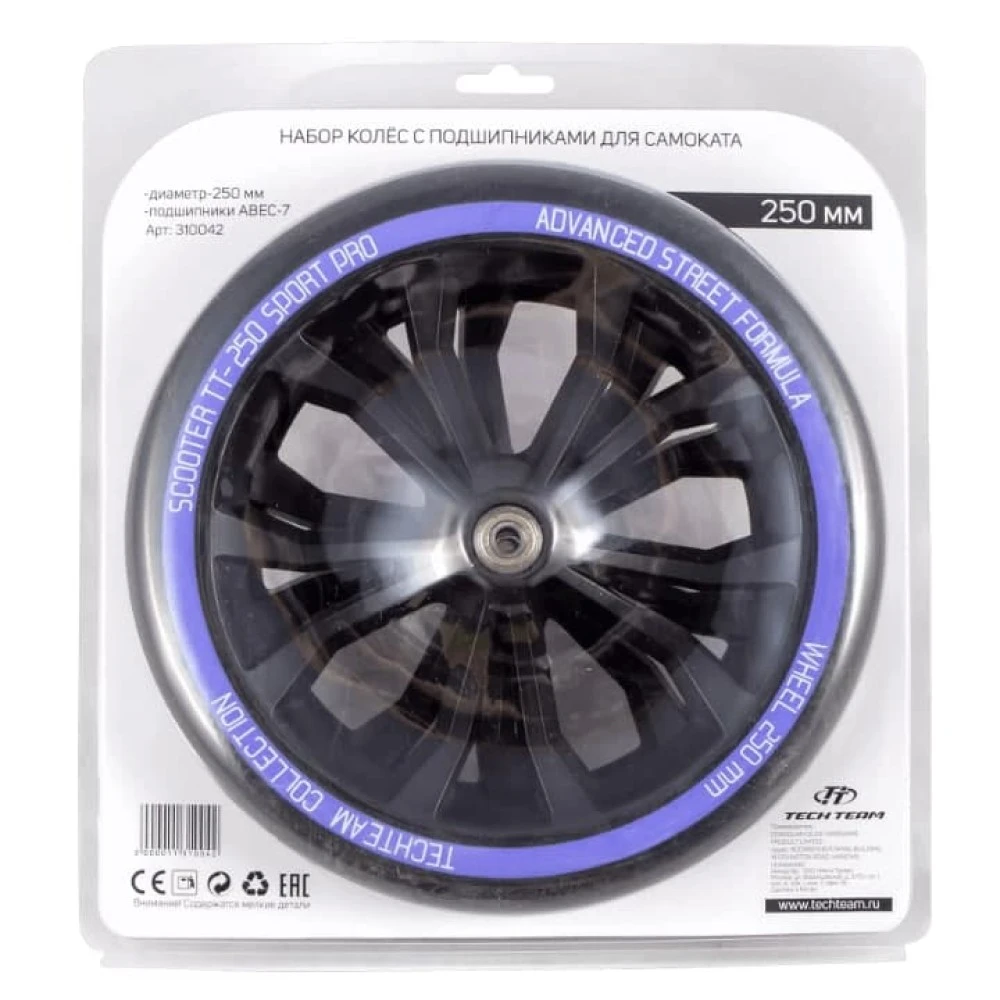 Набор колес с подшипниками для самоката 250мм (синий)